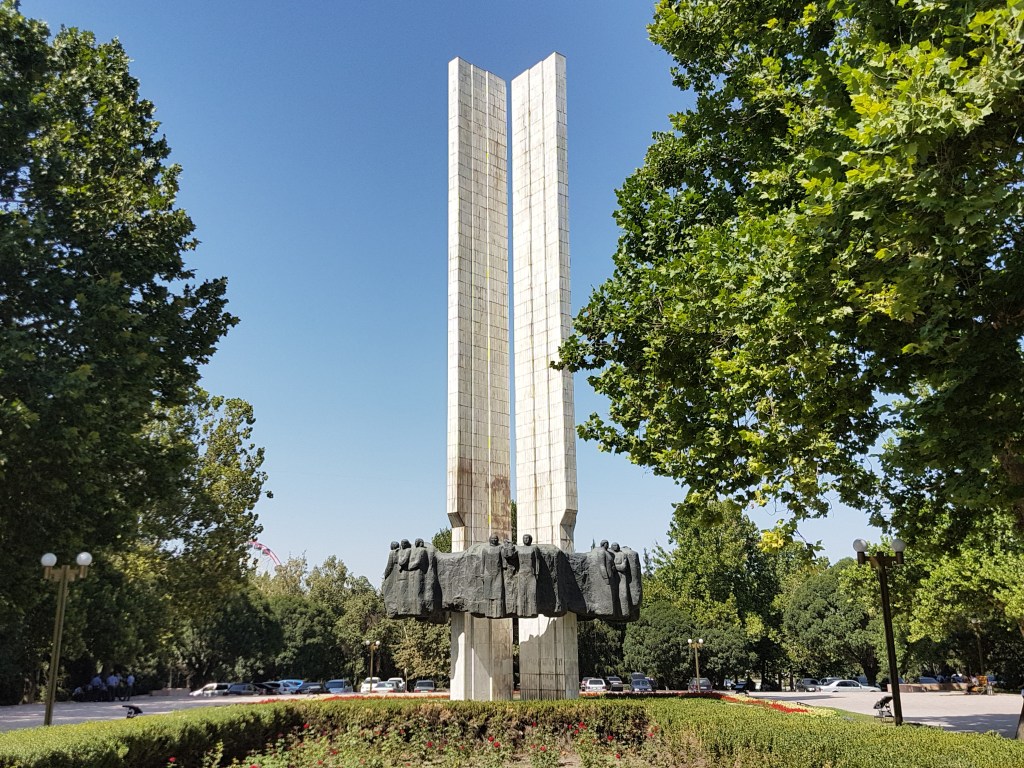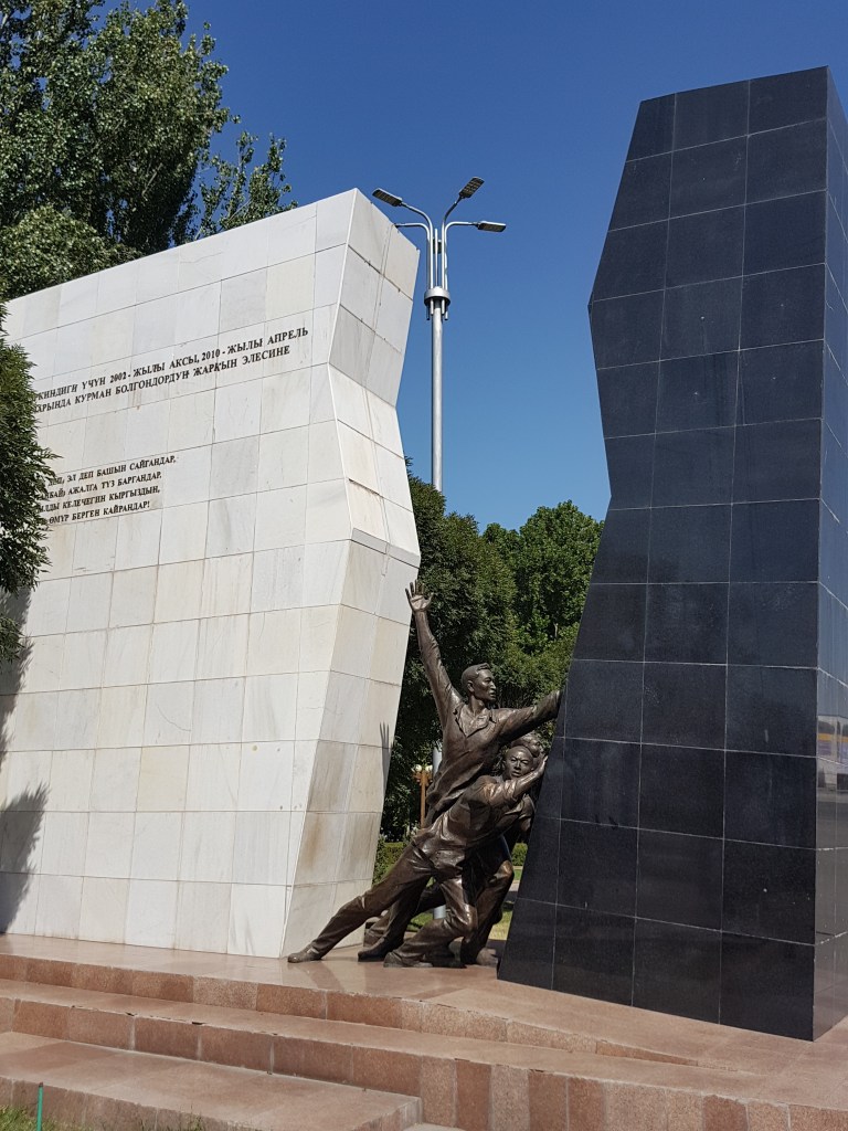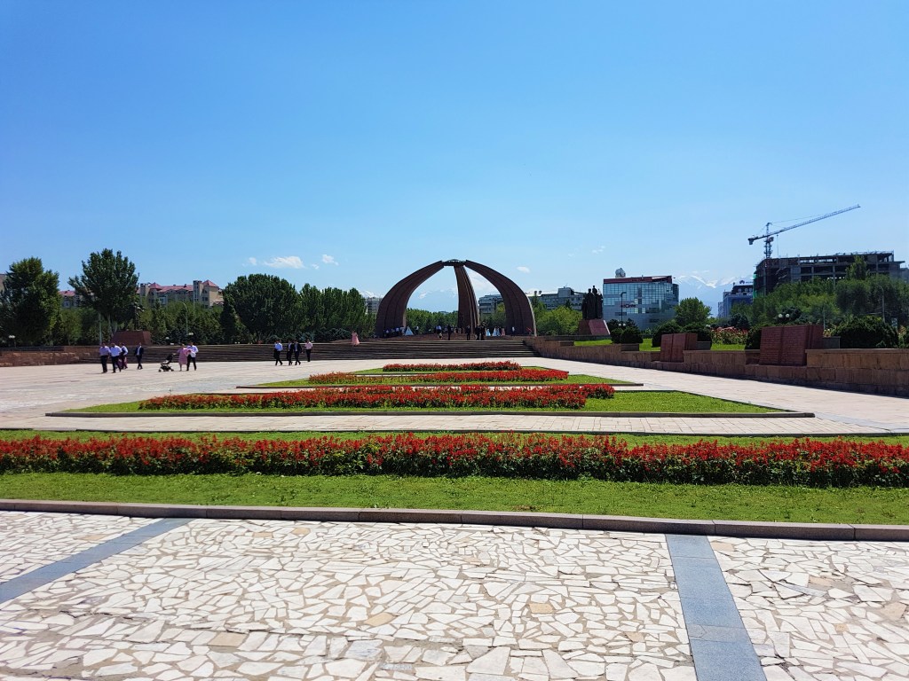 The Monument of Heroes is dedicated to the civilians who lost their lives in the two revolutions. It symbolises the Kyrgyz people pushing out the darkness of corruption. This leaving room for democracy, signified by the white section. Interestingly, this monument is just a block down from the Kyrgyz White House, the Presidential office building, where the riots from the two revolutions started.