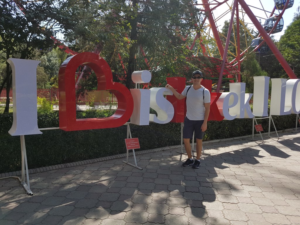 Right: An “I love Bishkek” sign is featured in the park. Vital information
