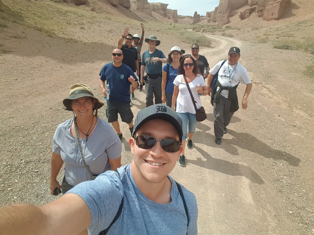 We then had to wait in a line for them to open the barricade to No Man’s Land. A quick walk over to the Kazakh passport control where the stern “no photos allowed” Kazakh border force quickly warmed to us and even asked to take a selfie with one member from the group. Once we were in Kazakhstan, they made us open our bags – not 100% sure what they were looking for but we all passed no problems.