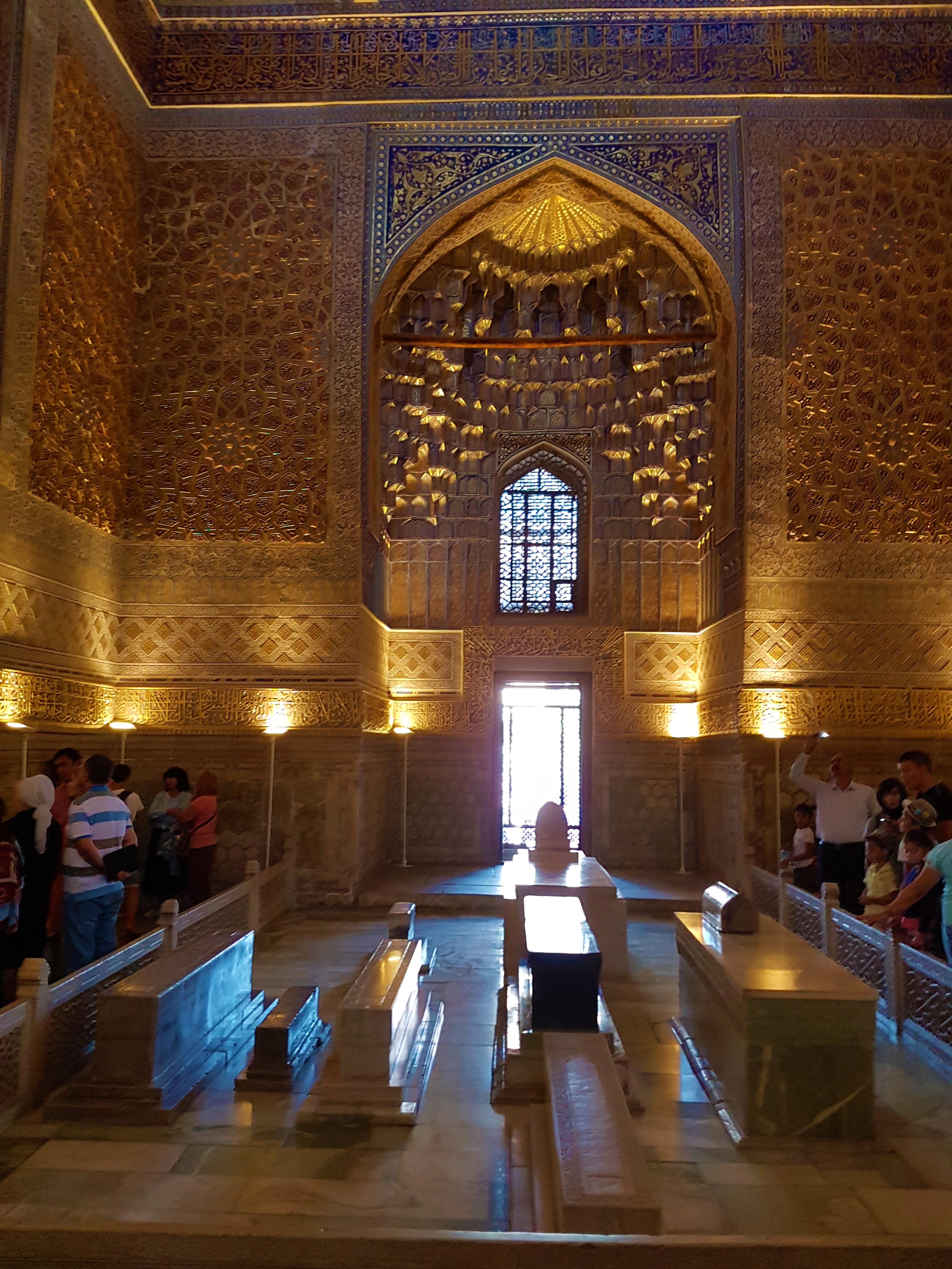 First stop the next morning was a visit to Timur’s Mausoleum. Built in 1404 it translates to ‘Tomb of the King.” As modest as always, the words “here is buried the most powerful and humble sultan of his time” are constructed into the facade of the entrance. Also lying here next to Timur are two of his sons, two of his grandsons including Ulugh Beg and Timur’s spiritual teacher, Sayyid Baraka.