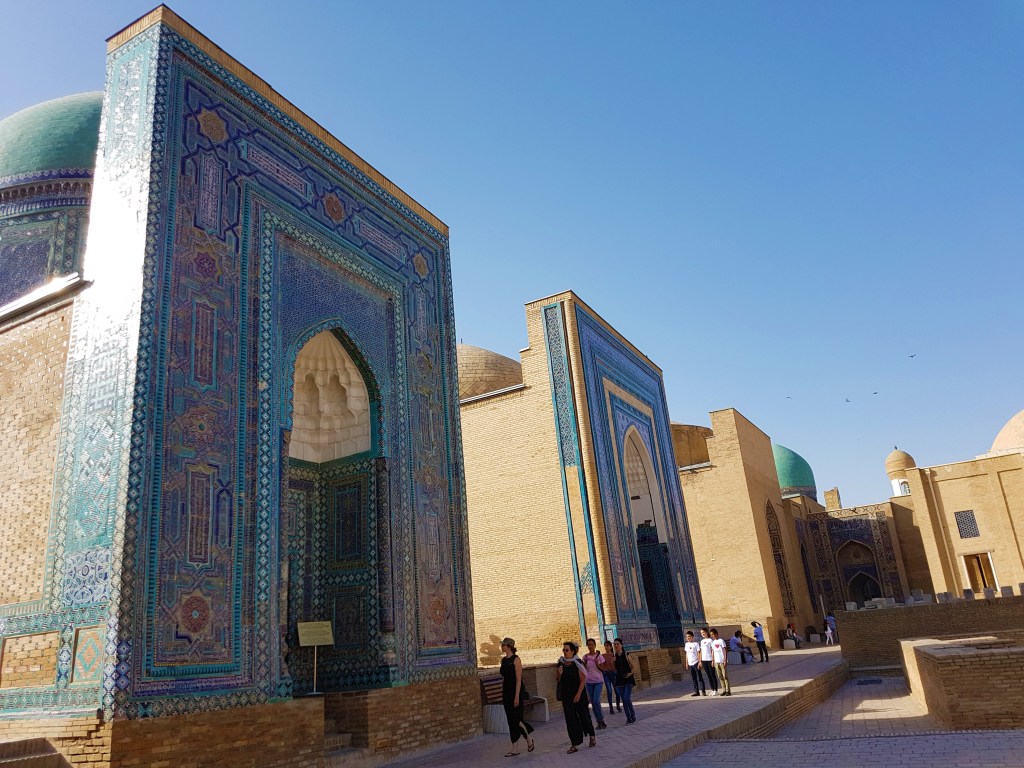 The necropolis. A series of stunning mausoleums all built between the 9th and 14th Centuries. Many of Timur’s relatives, including sister and niece, and military personnel are buried in some of the twenty intricately designed mausoleums that make up the Shah-i-Zinda ensemble.
