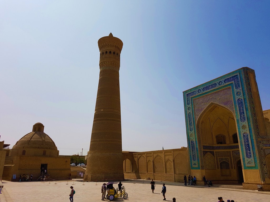 The Kalyan minaret is a particularly well-known monument in Bukhara, dominating the relatively flat skyline of the city. Built in 1127AD, it was actually known as The Tower of Death with criminals being thrown off the top as their punishment.