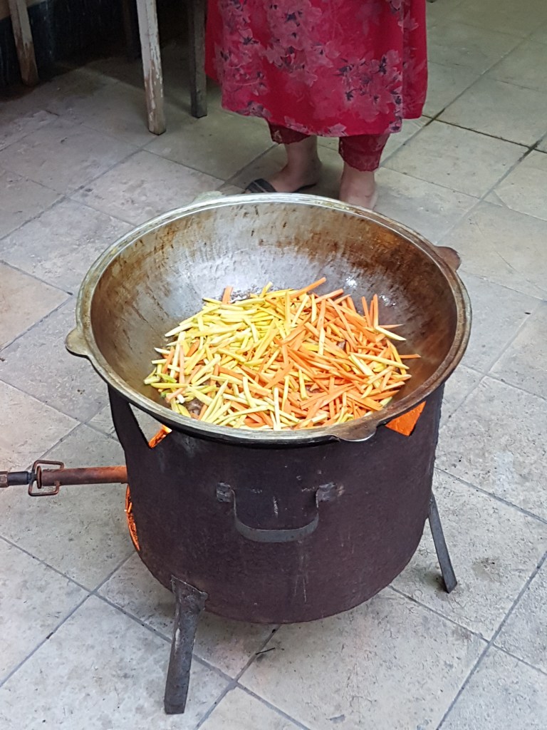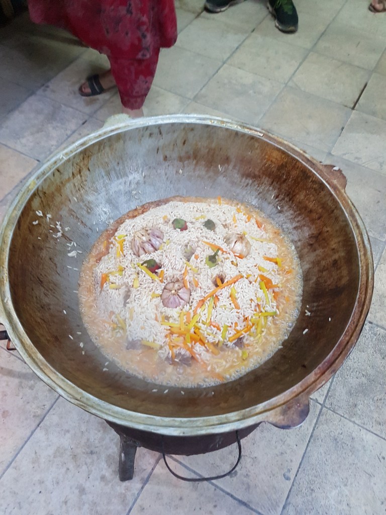 In the evening we were treated to a dinner at a local family’s house. The matriarch of the family cooked us an amazing pilaf/pilau – a traditional dish in Uzbekistan. Cooked in a huge dish, the matriarch described to us the ingredients and the process behind making the perfect pilaf. Unfortunately, I don’t remember any of those tips… except garlic and rice… and that it was phenomenal…