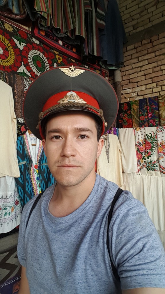 Across the road from this building is an op shop like no other. It was a Soviet op shop, where you could buy souvenirs and relics, pins, magnets, and postcards all from the Soviet Era. You can even still buy former Soviet uniforms. Naturally, this provided some photo opportunities…