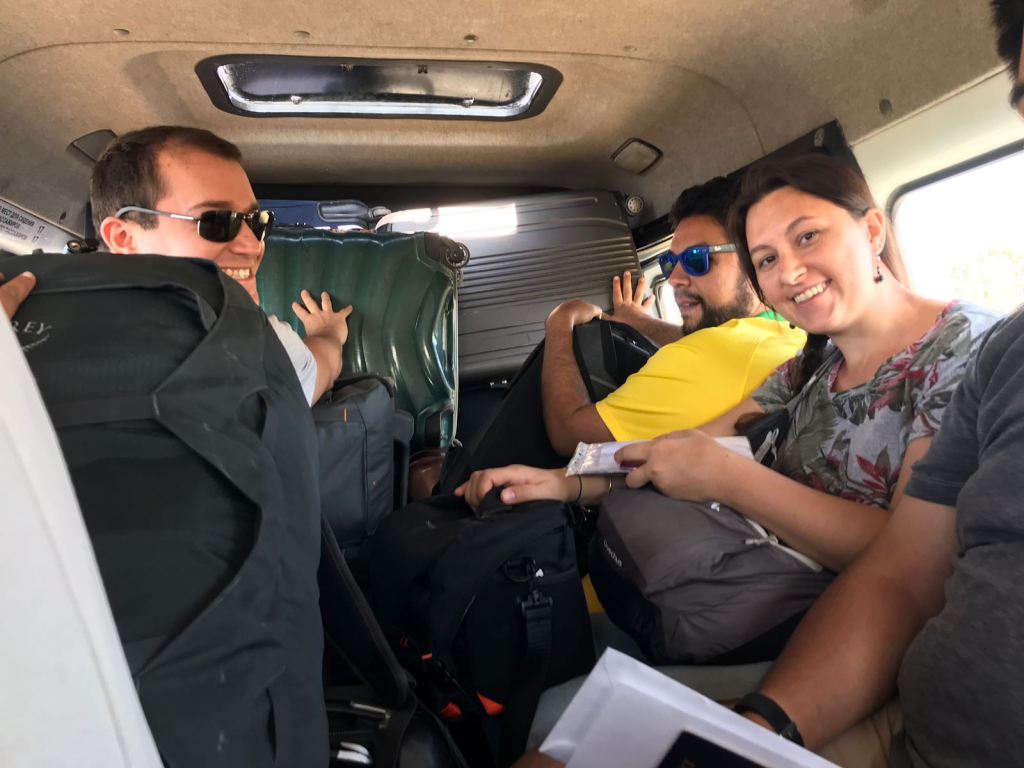 Stage 6 – The Drive to Turkmenistan: At this crossing there is a mandatory shuttle ride you take from this first checkpoint until the actual border. The 10 of us, each with a piece of luggage plus a carry on (plus additional souvenir bags) had to squeeze in to a minivan. The cost, per shuttle, is US$1 plus US$1 for the bags – again payable in cash.
