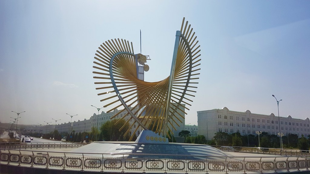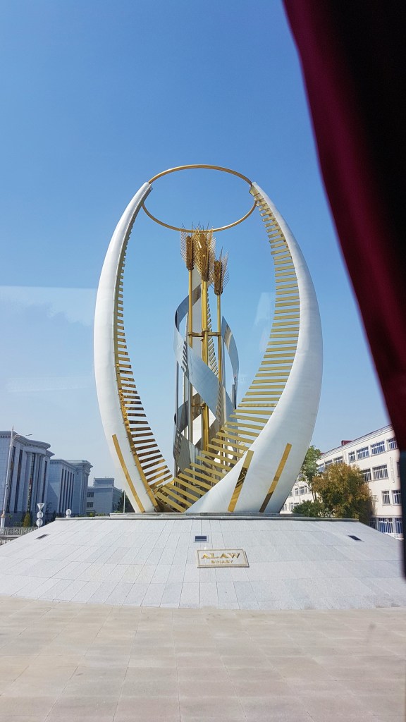 The below photo was taken at Ashgabat airport, which itself is shaped in the form of a bird.