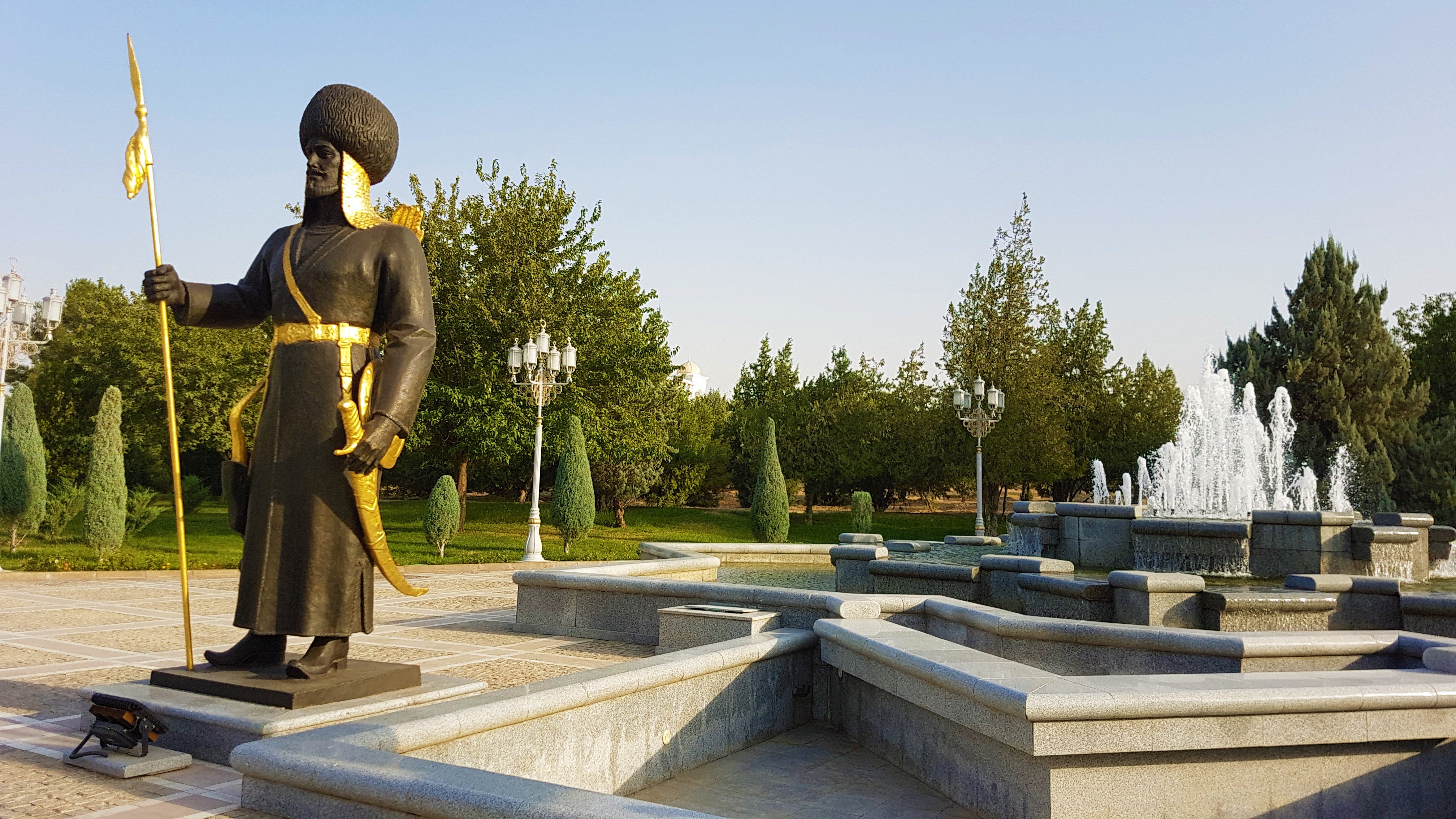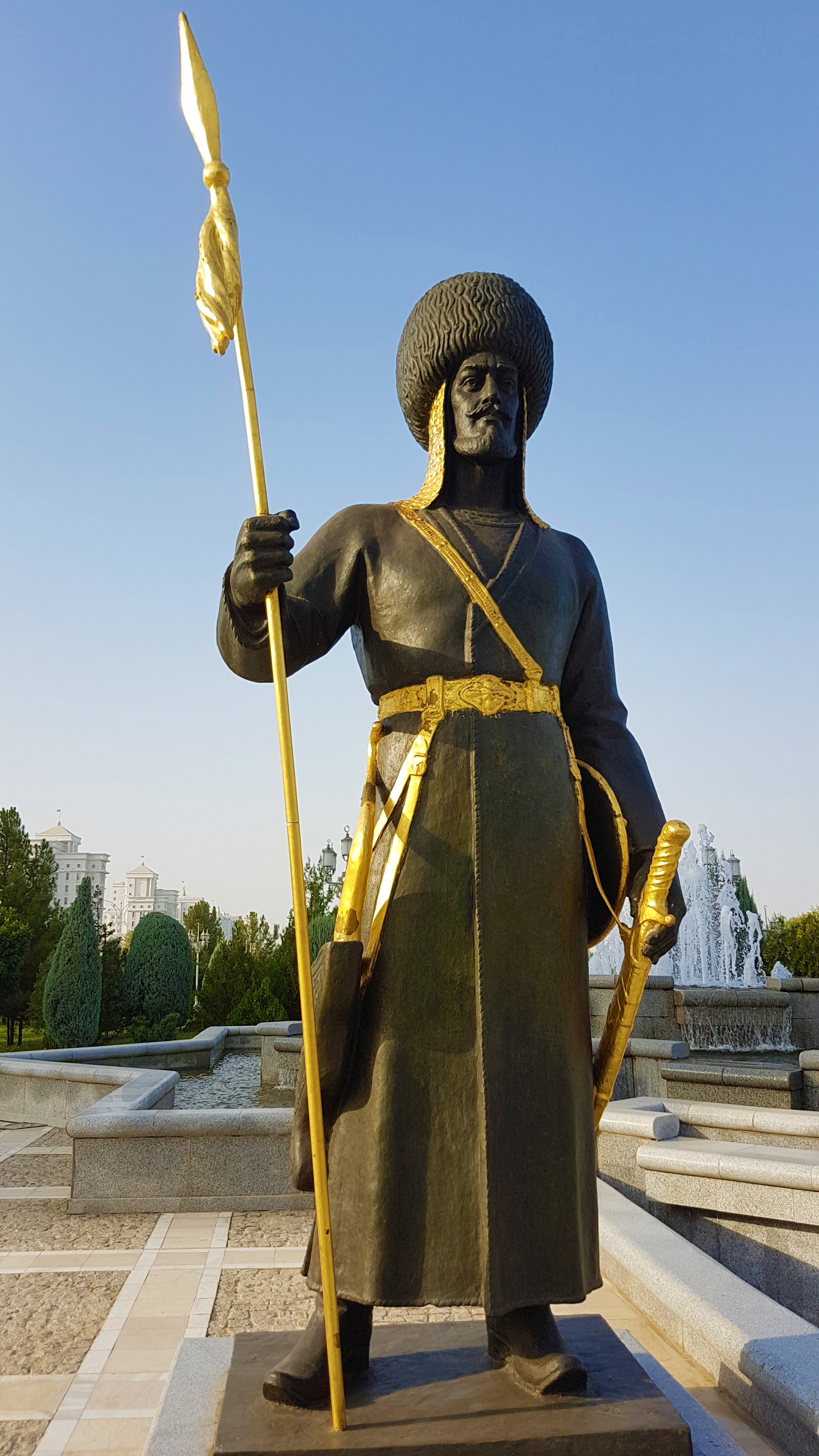In front of the monument is a golden statue of Niyazov. As part of the city’s urban renewal project, former President Niyazov had, controversially, built several golden statues of himself including one on a rotating platform that was to always face the sun.