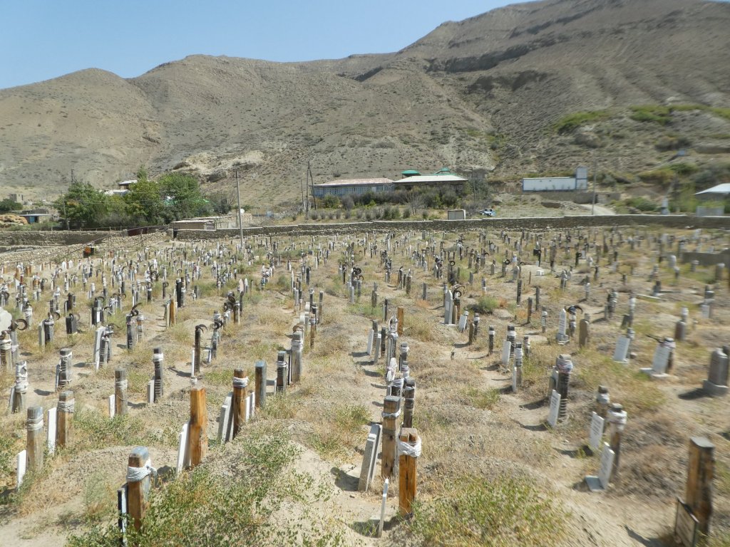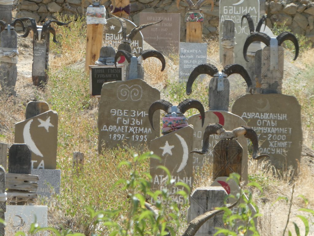 Nokhuri graveyard, adorned with the horns of rams to fight off evil spirits.