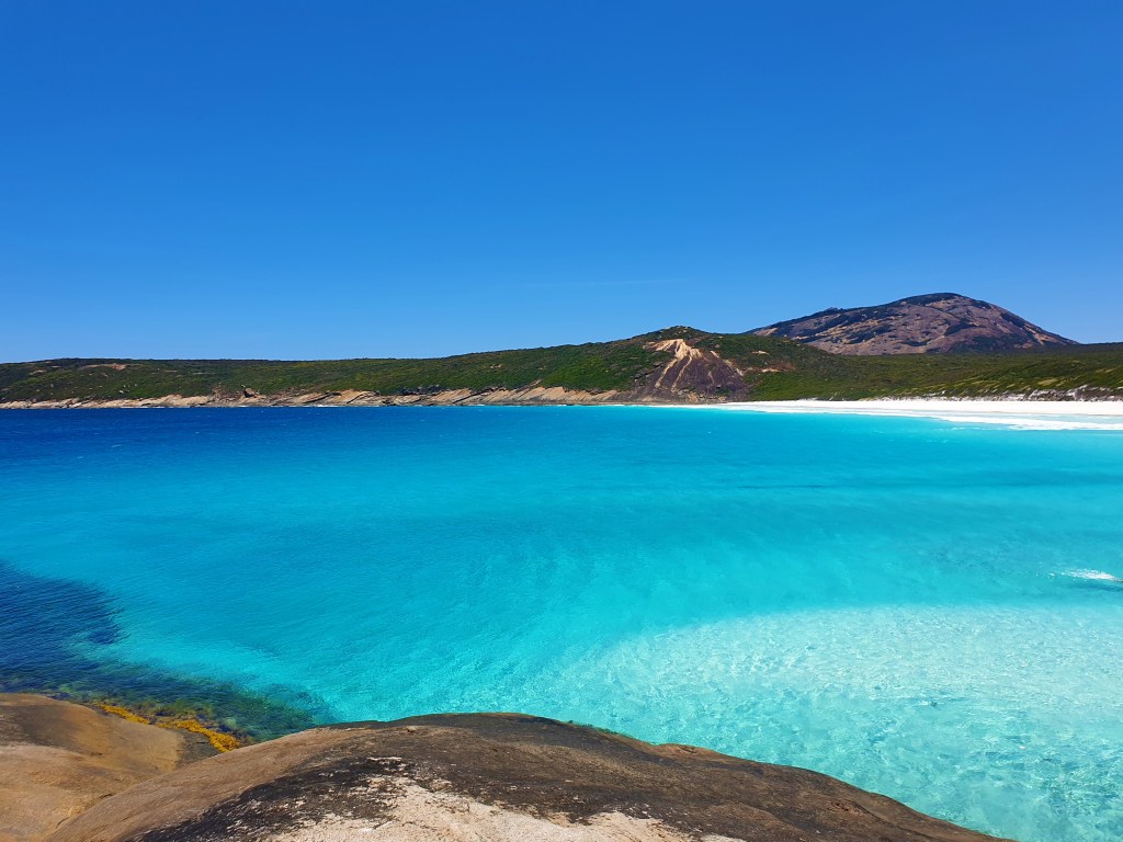 Enter the beauty of Lucky Bay in Cape Le Grand National Park not far from Esperance, Western Australia (about an 8 hour drive from Perth). I didn’t think it was possible to see such crystal clear water and such silky smooth brilliant white sand in Australia but here we are. The calmness of the water, the stunning surrounds and the excitement at the possibility of seeing kangaroos hop around the beach makes this a very impressive place.